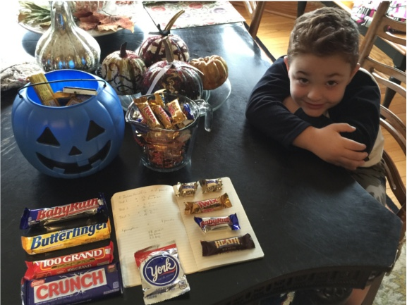 The math behind Candies in Container calculators is pretty straight forward. We use basic Euclidean (3D) geometry to compute the volume of the containers based on their shapes. Once we know the volume, we are able to make reasonable estimates based on an average number of candies in a known volume. We (Issac and Poppy) bought large bags of the different types of candies and our candy expert (see picture) measured them in kitchen measuring bowls. Then we counted the number of candies and did the math to get the estimated number of candies in a gallon container. Here the results.