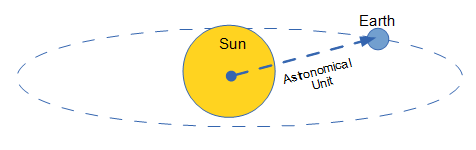 Astronomical Unit (au): Within our solar system, a common measure of distance is au, which stands for astronomical units. A single astronomical unit is the mean distance from the Sun's center to the center of the Earth.