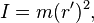 This simple formula generalizes to define moment of inertia for an arbitrarily shaped body as the sum of all the elemental point masses dm each multiplied by the square of its perpendicular distance r to an axis S .