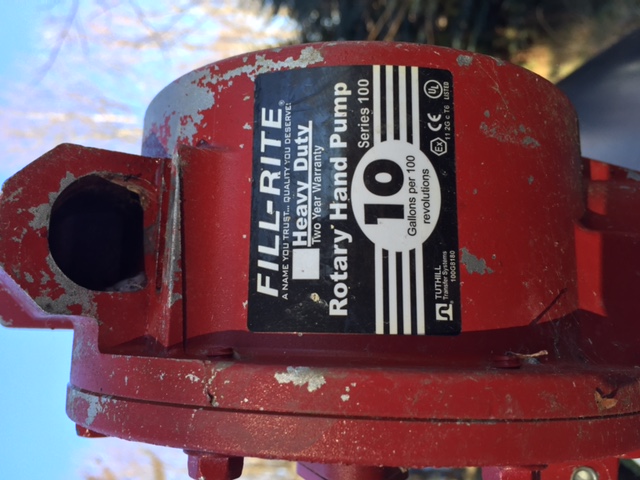 These pictures show an above ground storage tank with diesel fuel with a hand crank that pumps 10 gallons for every 100 turns of the pump crank. During cold periods, the fuel supplier will treat the diesel with an anti-freeze mixture, but this is only a concern if the temp is well below zero degrees F (e.g.-5 F or colder).