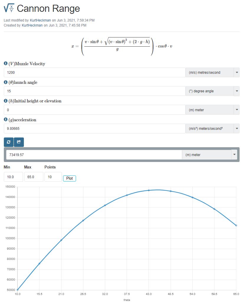 For plotting, the X axis was set to the launch angle (θ) with a minimum of 10° and a maximum of 65°.
