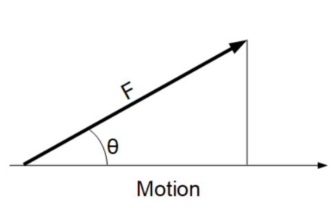 Work in this equation is a function of a constant force, |F|, in the direction of (F). Since the Force may not be in the same direction as the movement of the mass, the user can also include an angle (θ) for the angular difference between the direction of movement and the direction of the force (F).