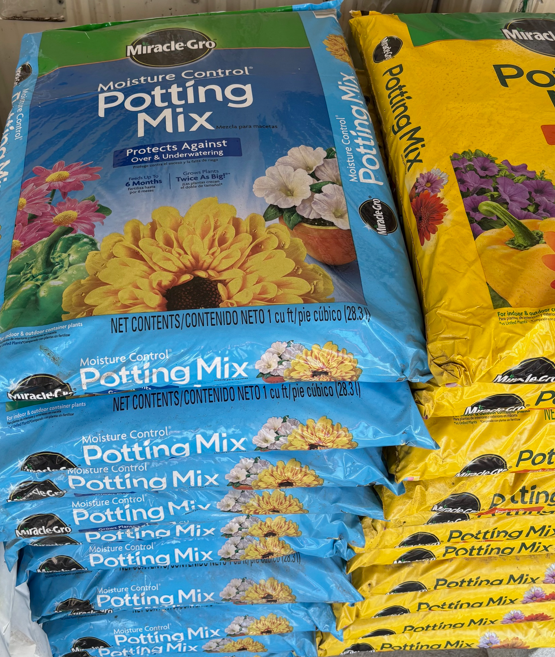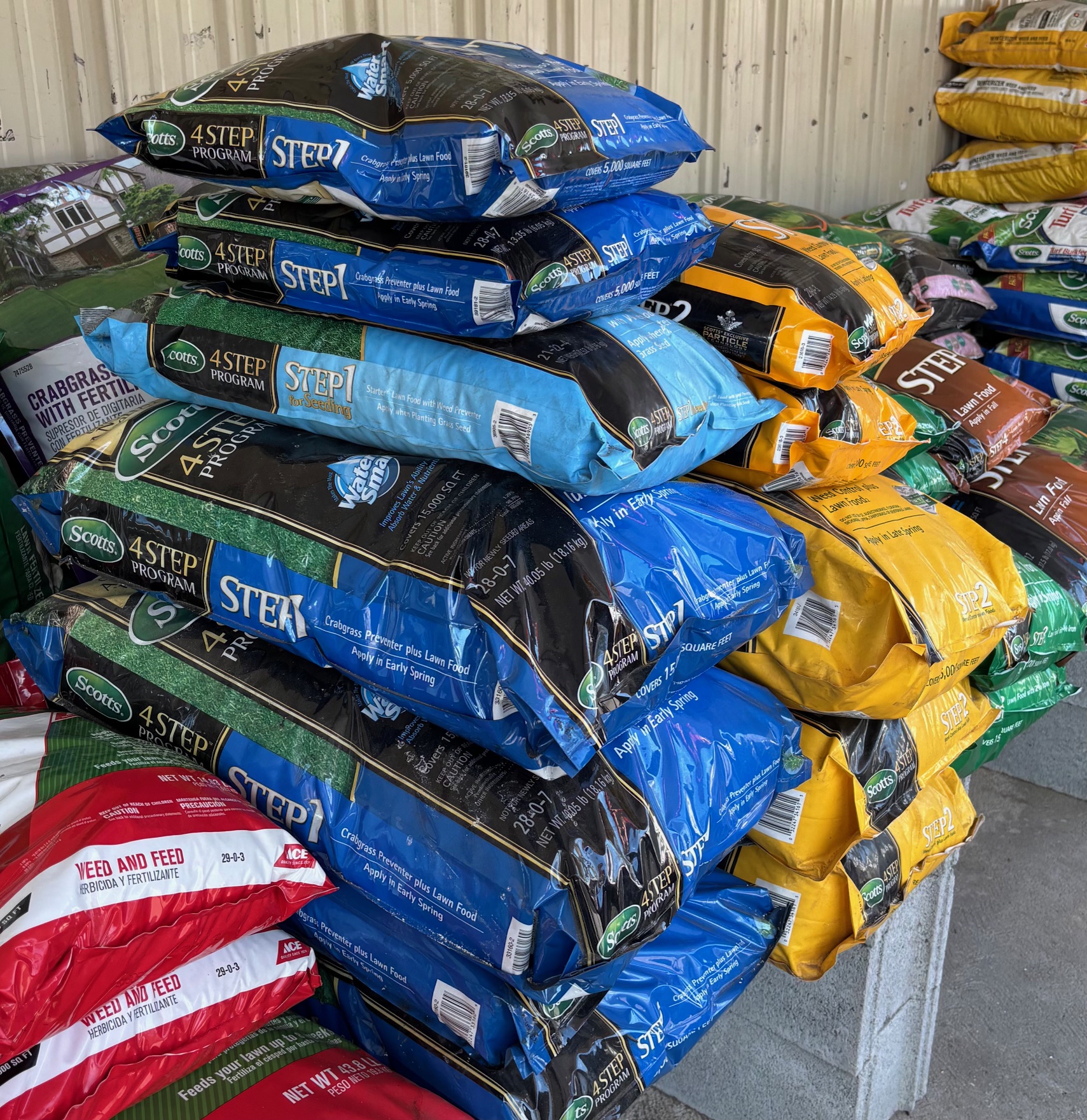 - Potting Mix, Garden Soil, Mulch, Grass seed, Fertilizers and Lawn Treatment.