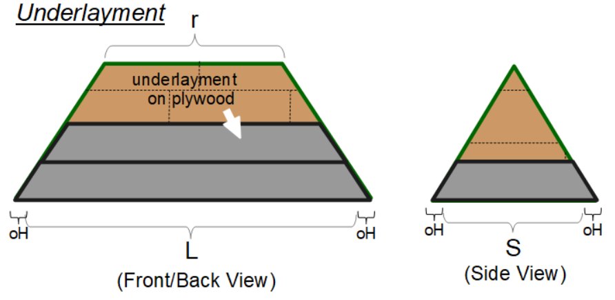 - Underlayment for Hip Roof: This computes the surface area of a hip roof based on the dimensions and then uses the surface area to compute the cost of underlayment based on the unit price (price per square feet) of underlayment material.