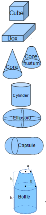 The mass equations in this calculator are based on three dimensional (3D) shapes and equations to calculate their volume. The geometric shapes included in this calculator are: