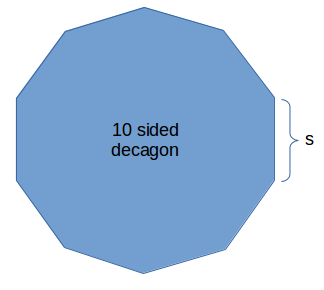 The Area of a Decagon calculator computes the area of regular polygon with 10 sided, a decagon.
