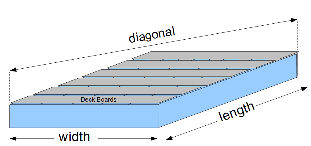 The diagonal is an important number to have when building a deck or floor. The diagonal will tell you if you have square corners. Compute the diagonal and then adjust the position of your corners until the measured diagonal matches the calculated diagonal.