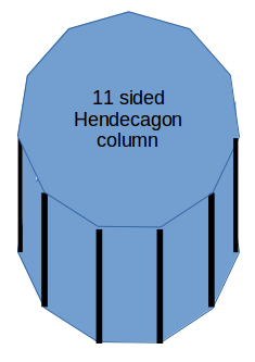 A regular hendecagon has eleven equal sides and equal angles. The formula for the weight or mass of a hendecagon column is: