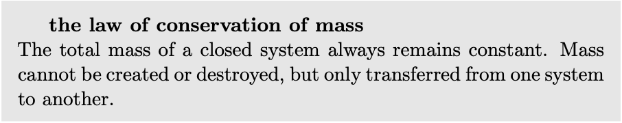 We say that the number of grams of gold is a conserved quantity. In this context, the word “conserve” does not have its usual meaning of trying not to waste something. In physics, a conserved quantity is something that you wouldn't be able to get rid of even if you wanted to. Conservation laws in physics always refer to a closed system, meaning a region of space with boundaries through which the quantity in question is not passing. In our example, the alchemist's laboratory is a closed system because no gold is coming in or out through the doors.