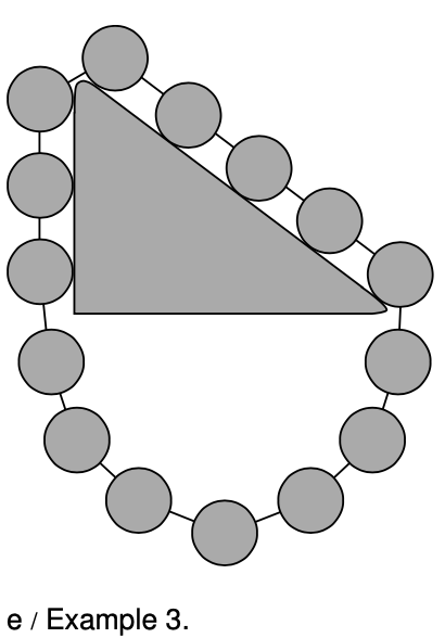 The point of the imaginary machine is to show the mechanical advantage of an inclined plane. In this example, the triangle has the proportions 3-4-5, but the argument works for any right triangle. We imagine that the chain of balls slides without friction, so that no energy is ever converted into heat. If we were to slide the chain clockwise by one step, then each ball would take the place of the one in front of it, and the over all configuration would be exactly the same. Since energy is something that only depends on the state of the system, the energy would have to be the same. Similarly for a counterclockwise rotation, no energy of position would be released by gravity. This means that if we place the chain on the triangle, and release it at rest, it can't start moving, because there would be no way for it to convert energy of position into energy of motion. Thus the chain must be perfectly balanced. Now by symmetry, the arc of the chain hanging underneath the triangle has equal tension at both ends, so removing this arc wouldn't affect the balance of the rest of the chain. This means that a weight of three units hanging vertically balances a weight of five units hanging diagonally along the hypotenuse.