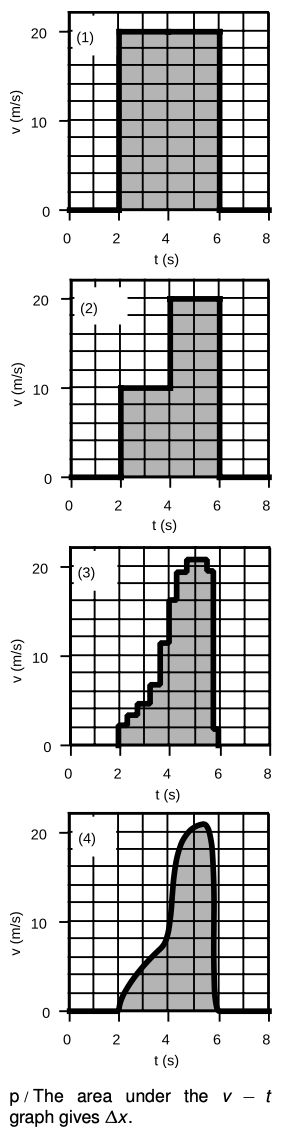 3.5 The area under the velocity-time graph by Benjamin Crowell, Light and Matter licensed under the Creative Commons Attribution-ShareAlike license.