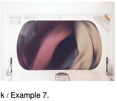 `=>` No. We know that there must be some minimum speed at which the motor can run that will result in the clothes just barely staying against the inside of the drum as they go over the top. If the clothes dryer ran at just this minimum speed, then there would be no normal force on the clothes at the top: they would be on the verge of losing contact. The only force acting on them at the top would be the force of gravity, which would give them an acceleration of . The actual dryer must be running slower than this minimum speed, because it produces an acceleration of only `8.8 m"/"s^2`. My theory is that this is done intentionally, to make the clothes mix and tumble.