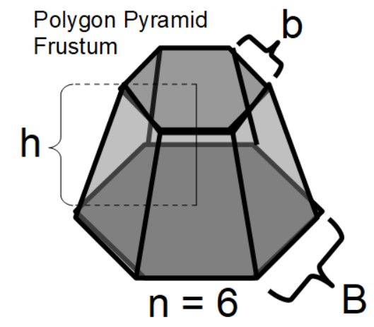 The Mass or Weight of the Frustum of a Polygon Pyramid calculator computes the mass or weight of a regular pyramid frustum based on the dimensions of the polygon base, the height of the frustum and the density of material.