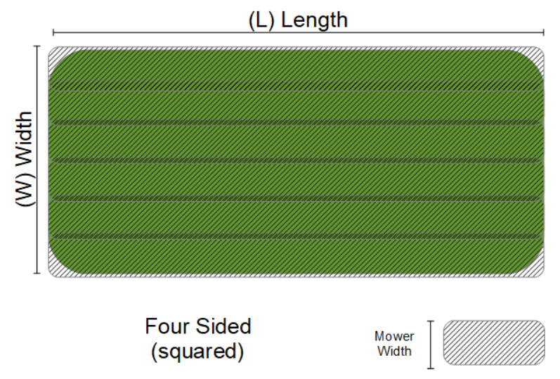 The Mowing Rectangle calculator estimates the distance walked, calories burned and time required to mow an area of grass based on the length and width of the rectangular area, person's weight, width of mower, mower speed and whether riding or pushing the mower.