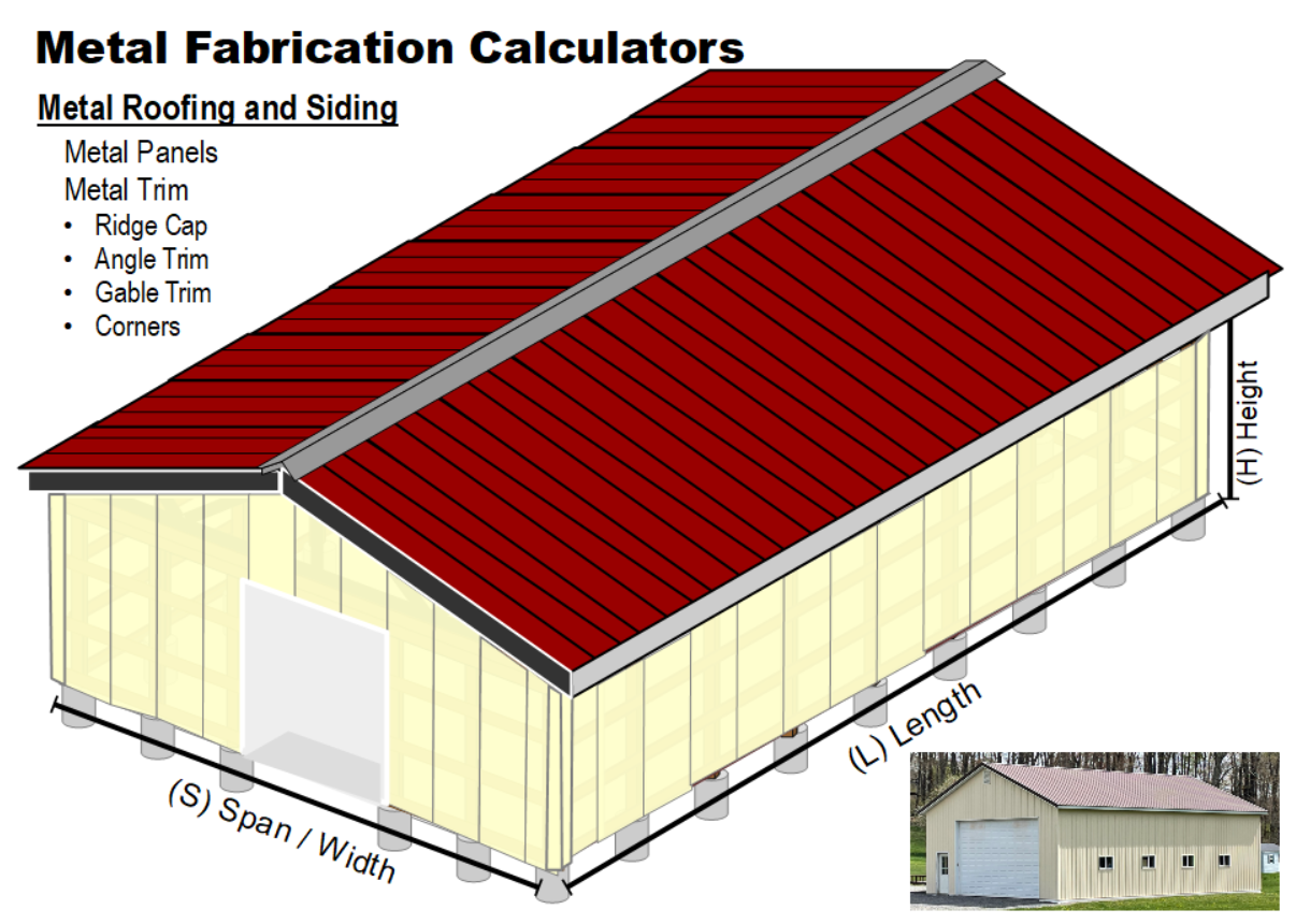 - Metal for Gambrel Roof: Computes the length and number of metal panels (ag panels) needed for a gambrel roof based on the dimensions. It also provides the length of the trim pieces.