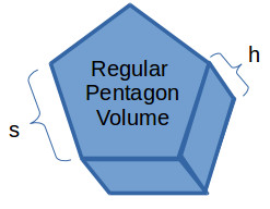 This Volume of a Pentagon calculator computes the volume of a regular pentagon shaped objects with 5 equal sides of length (s) and a height (h).