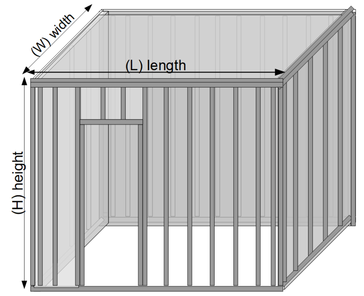 Studs for a Room (S): The number of studs required are computed. Note, this number does not include the base nor top plates since longer boards are typically used for those.