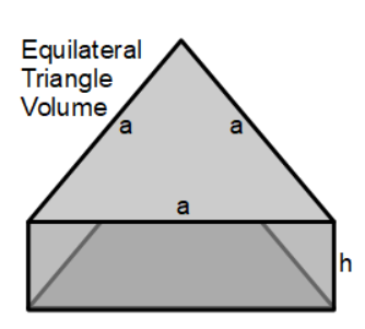 The formula for the volume of a triangular object where the triangle is an equilateral triangle with three sides of the same length, and an object height is: