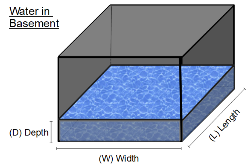 The Water in Basement Volume calculator computes the volume of water in an area such as a basement based on the dimensions and the time required to pump it out based on a sump pump rate.